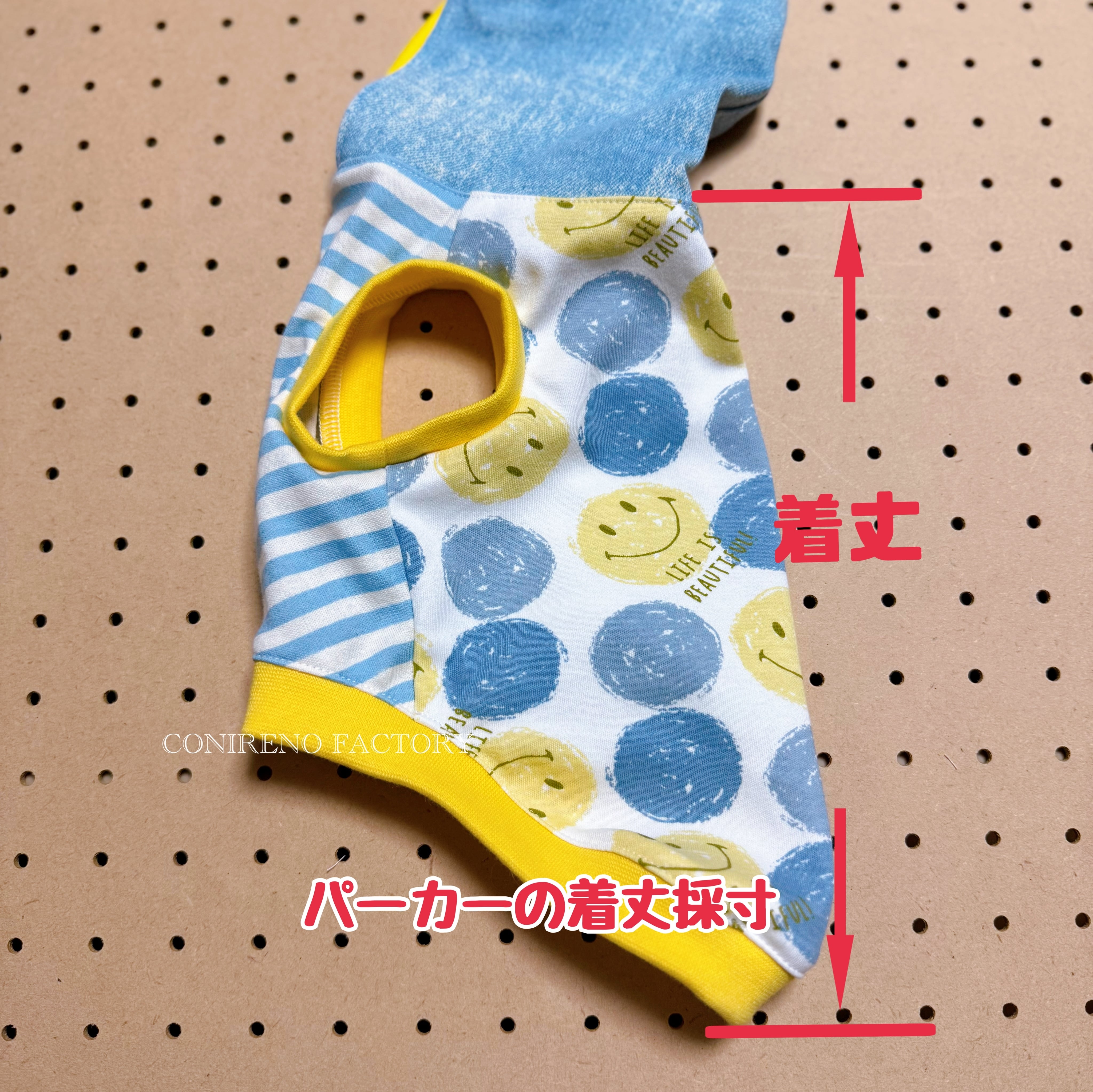 首、胴回り、着丈、の順で表記しています。