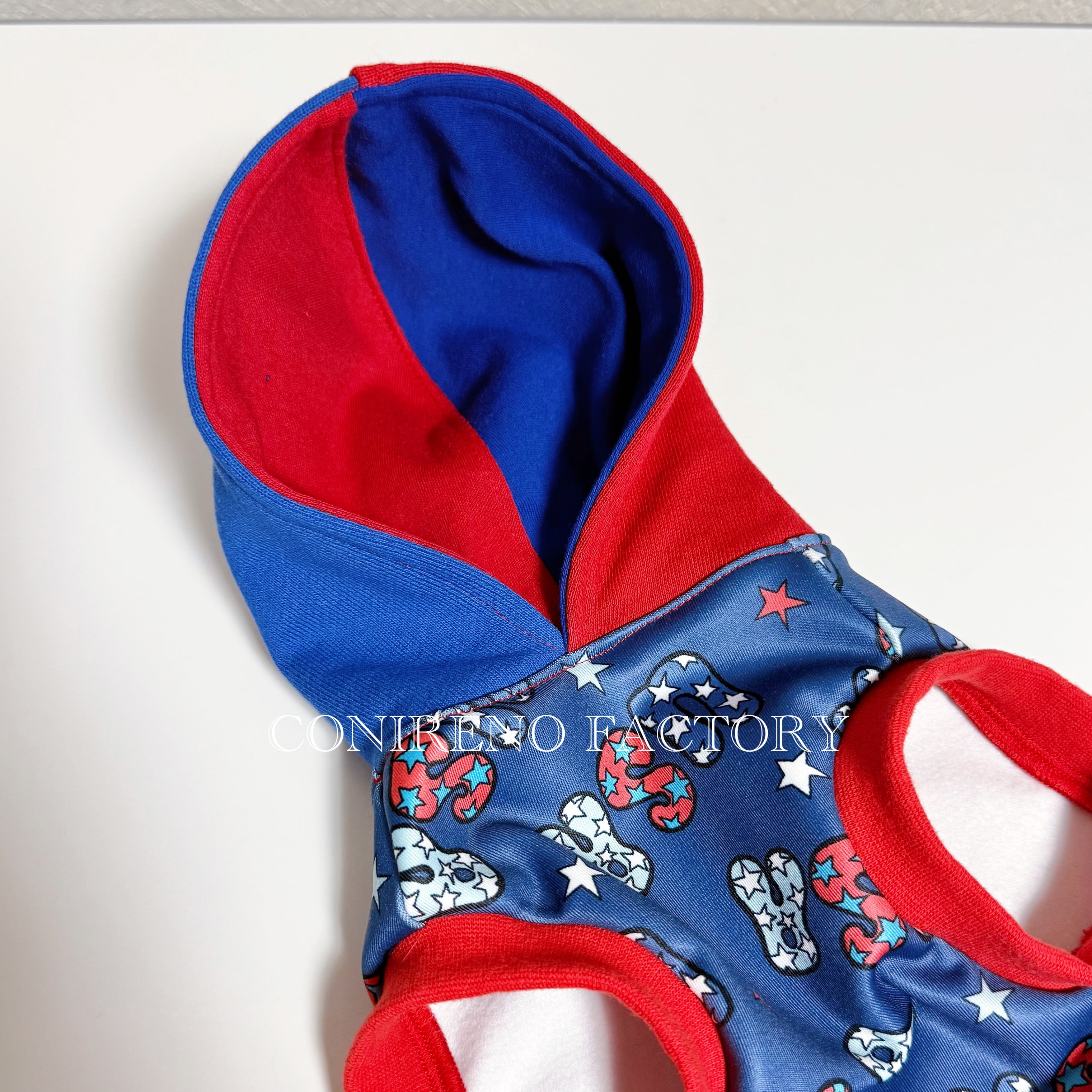 表はツルッとポリ、裏は起毛、水着のように伸縮性があり着せやすい生地です。
